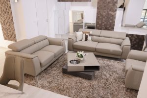 Les fauteuils, canapés et autres meubles dans ces teintes sont souvent en cuir. Une matière très élégante, très robuste et confortable qui convient parfaitement aux salons modernes.